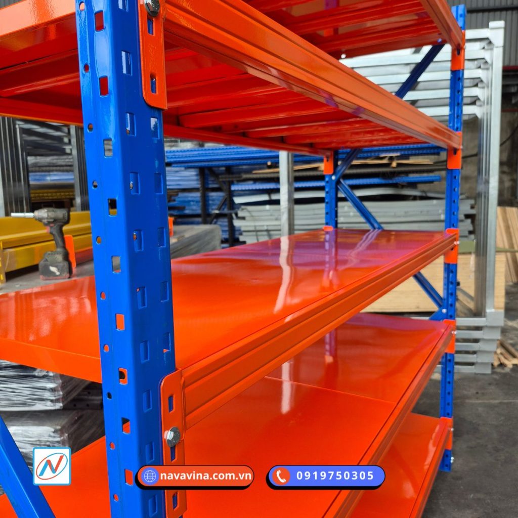 Khác với các mẫu kệ thấp tầng, kệ trung tải 5 tầng phù hợp hơn khi hàng hóa không quá cao và kho cần tăng số lượng vị trí lưu trữ trên cùng diện tích sàn. Nếu được tính đúng khoảng tầng, đây là phương án cân bằng tốt giữa sức chứa, chi phí đầu tư và khả năng thao tác hằng ngày. Navavina mô tả kệ trung tải là giải pháp lưu trữ tối ưu cho kho hàng vừa và nhỏ, nổi bật ở tính bền chắc, linh hoạt và tiết kiệm diện tích.